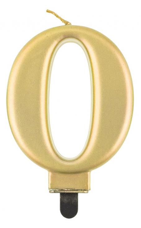 Arany 0-ás Metallic számgyertya, tortagyertya
