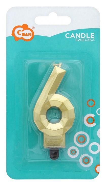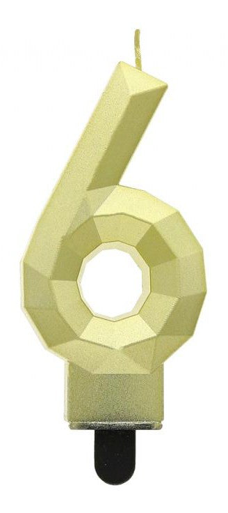 Arany 6-os Diamond Metallic számgyertya, tortagyertya