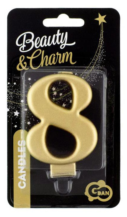 Arany 8-as Metallic számgyertya, tortagyertya