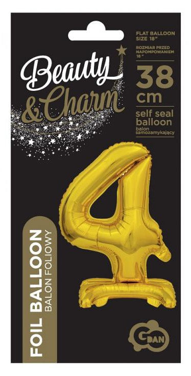 Arany B&C Gold mini 4-es szám fólia lufi talppal 38 cm