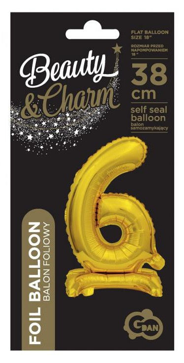 Arany B&C Gold mini 6-os szám fólia lufi talppal 38 cm