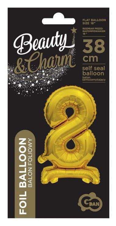 Arany B&C Gold mini 8-as szám fólia lufi talppal 38 cm