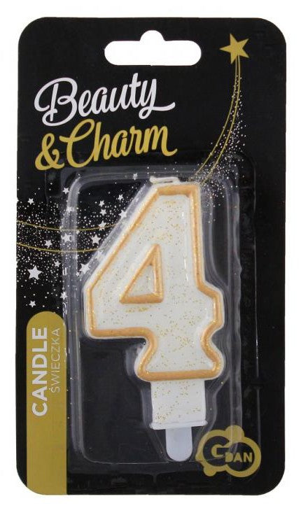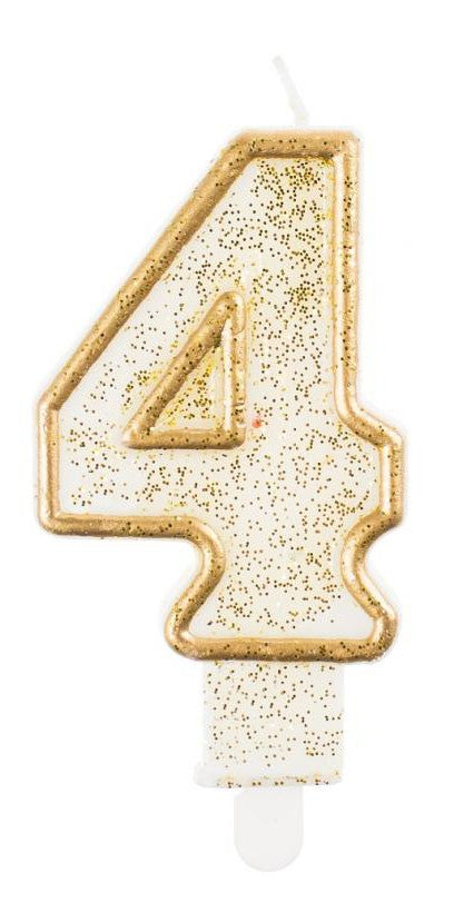 Arany csillámos 4-es Gold számgyertya, tortagyertya