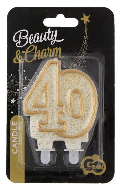 Arany csillámos 40-es Gold tortagyertya, számgyertya