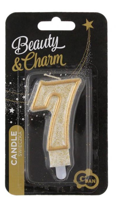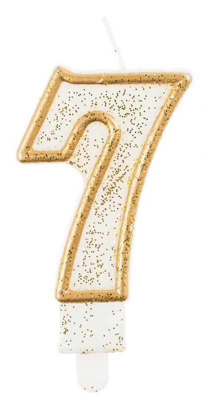 Arany csillámos 7-es Gold számgyertya, tortagyertya
