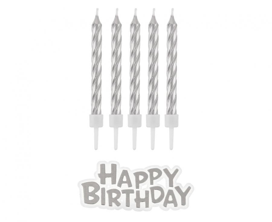 B&C Silver, Ezüst Happy Birthday gyertya szett 16 db-os