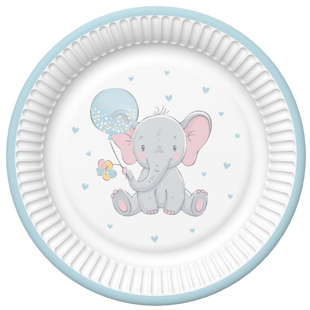 Baby elefánt Blue Balloon papírtányér 8 db-os 18 cm