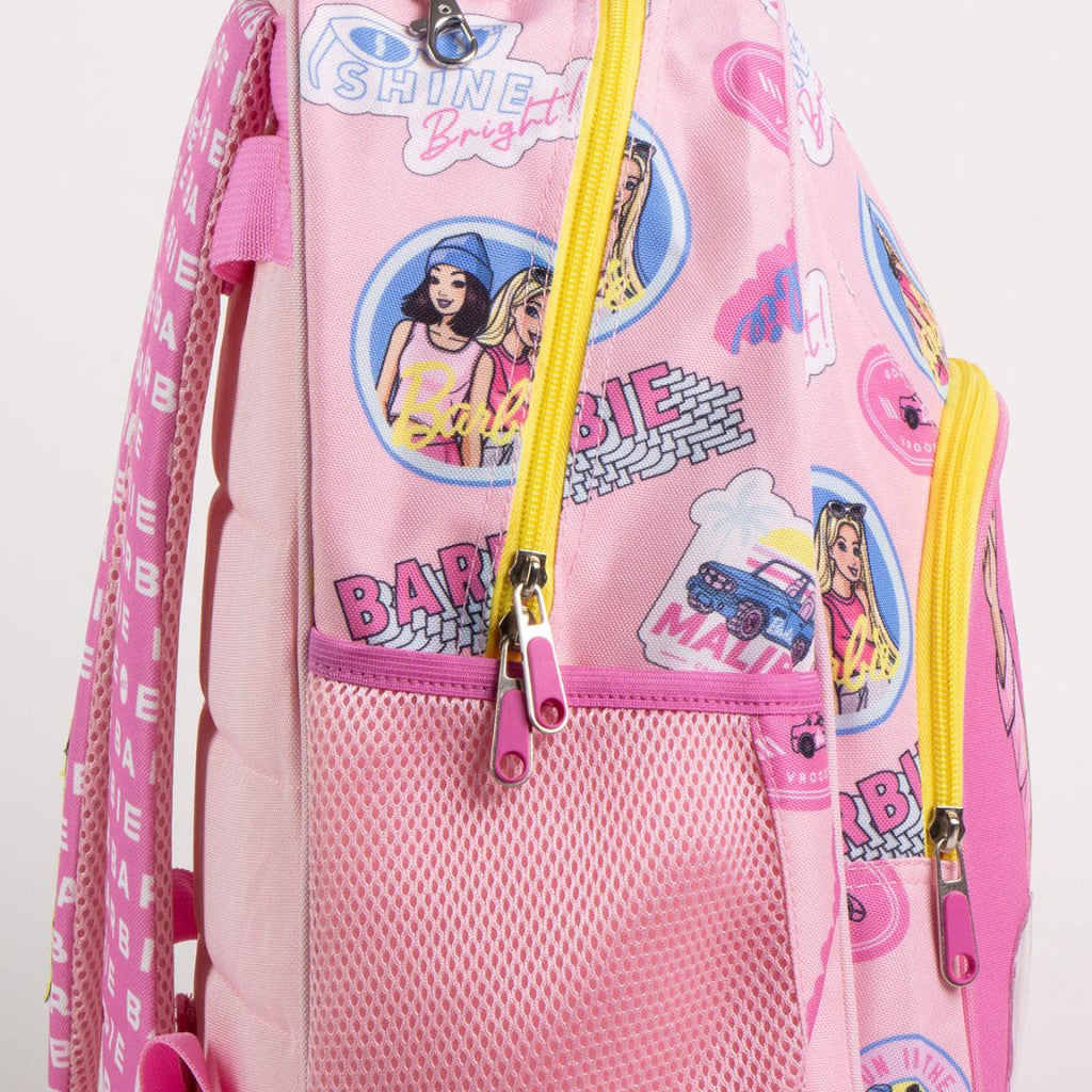 Barbie iskolatáska, táskaMéret: 42x34x15 cmAnyaga: 100% poliészterKettő oldalsó zsebbel és két cipzáras tárolóval rendelkezik.Pántjai állíthatóak. Bővebben