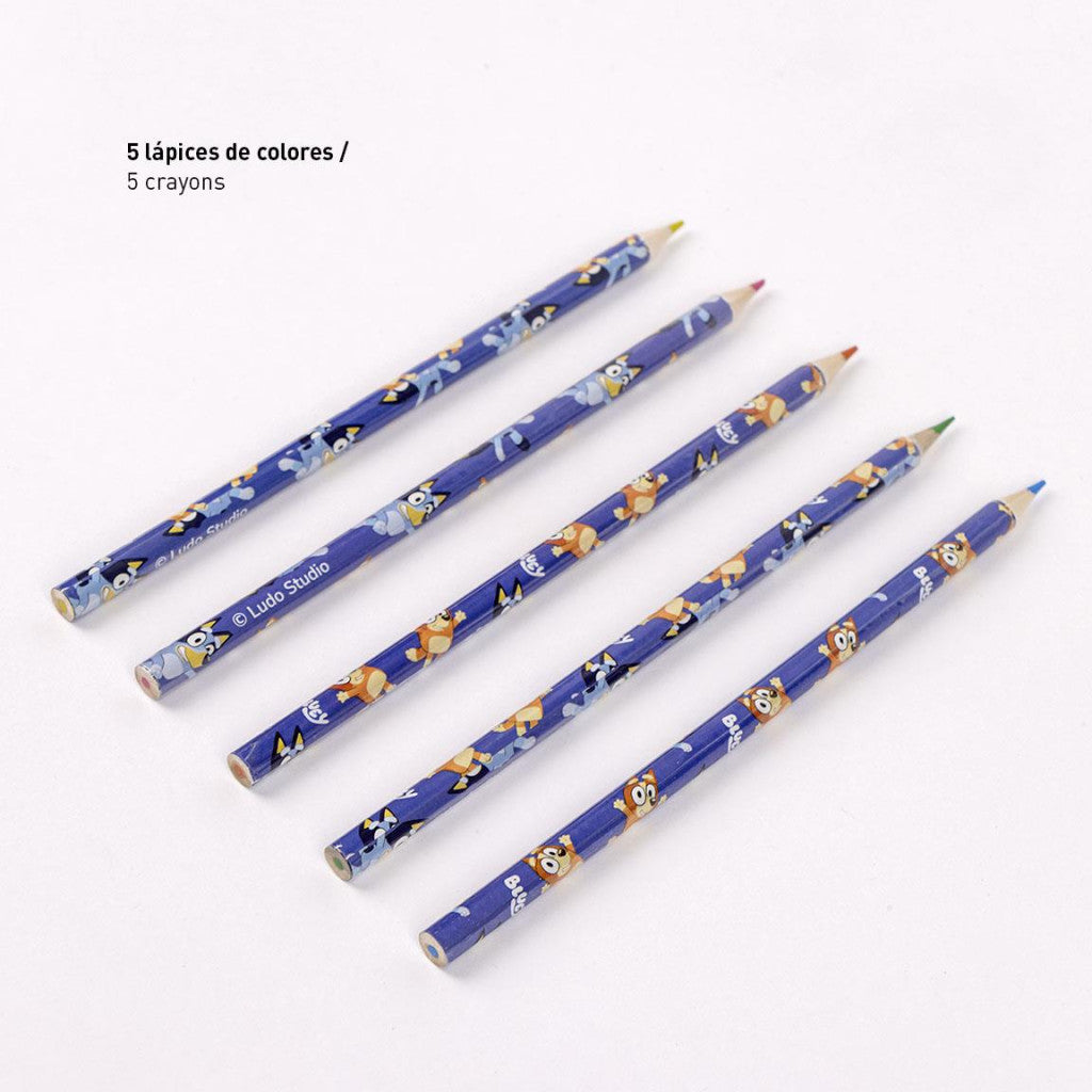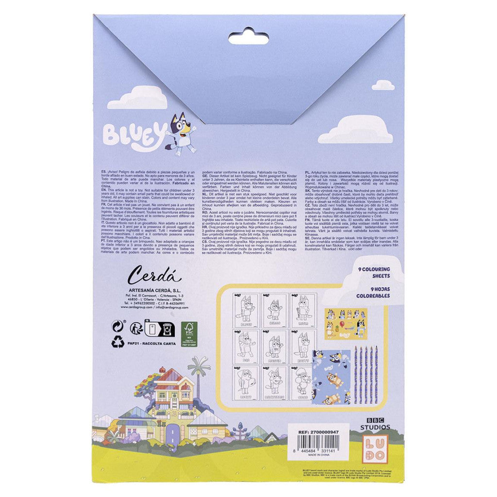 Bluey írószer szettMéret: 22x32 cmTartalma:-1 db A4 színező (9 oldalas)-1 db A5 színező notesz-5 db színes ceruza- matricák Bővebben