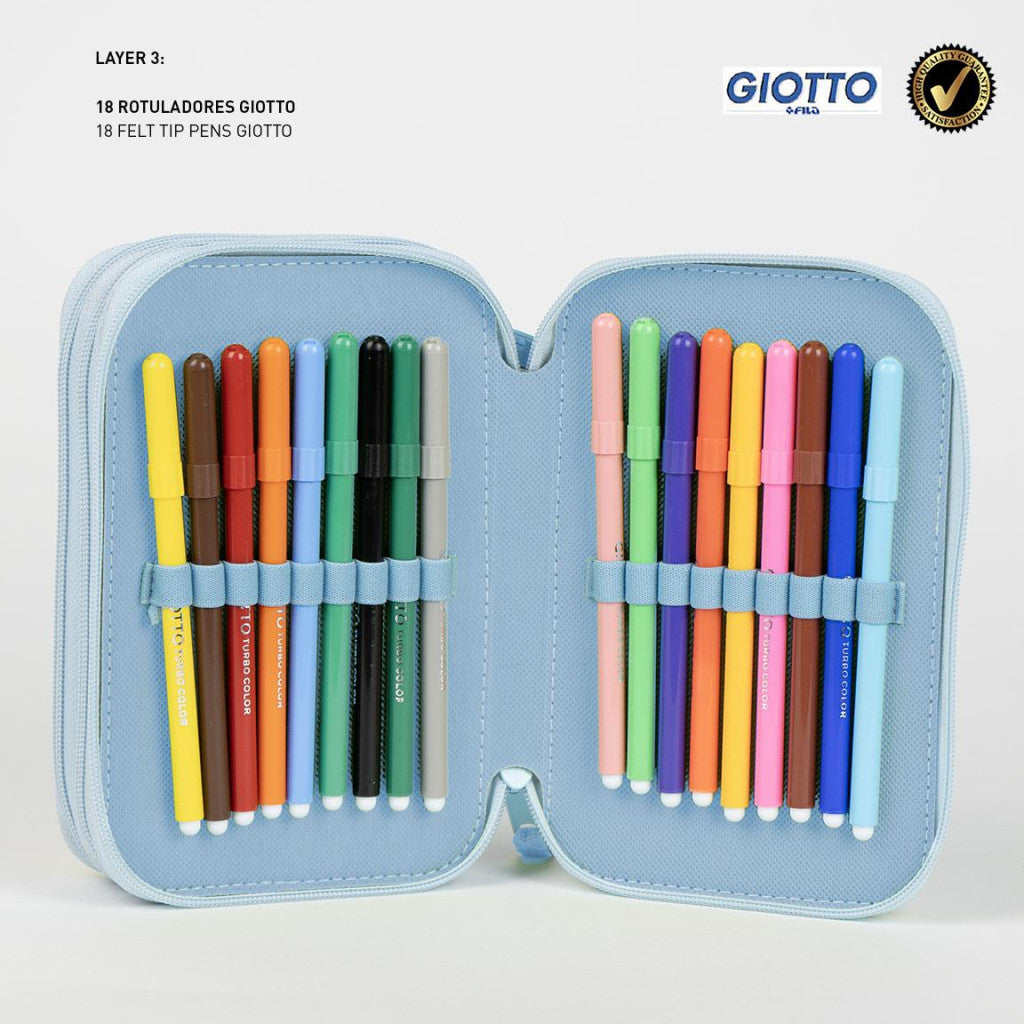 Bluey tolltartó töltött 3 emeletes. Tartalma:- 18 db színes ceruza- 18 db színes filctoll- 1 db grafit ceruza- 1 db... Bővebben