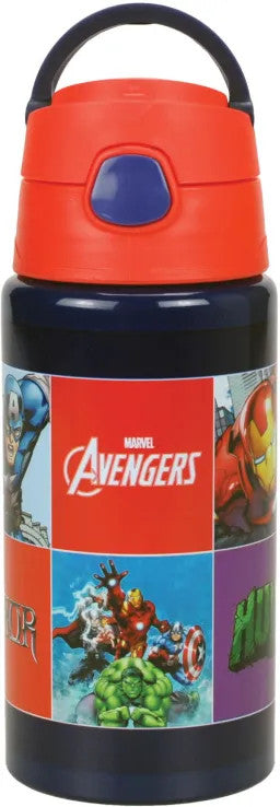 Avengers, Bosszúállók alumínium szívószálas kulacs akasztóval 500 mlErgonómikus fedél gombbal.Flakon védőkupakkal és porvédősapkával. Anyaga: Alumínium, műanyag. BPA mentes!Űrtartalom: 500 ml.... Bővebben