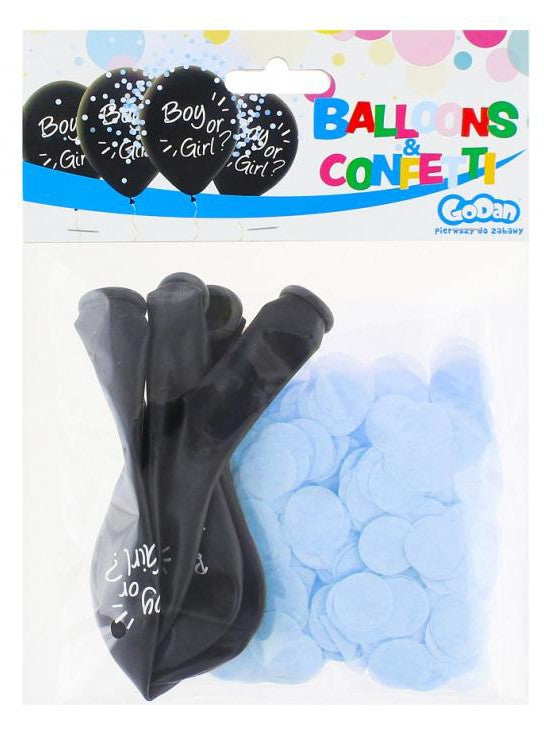 Boy or Girl, Kék konfettivel töltött léggömb, lufi 4 db-os 12 inch (30 cm)
