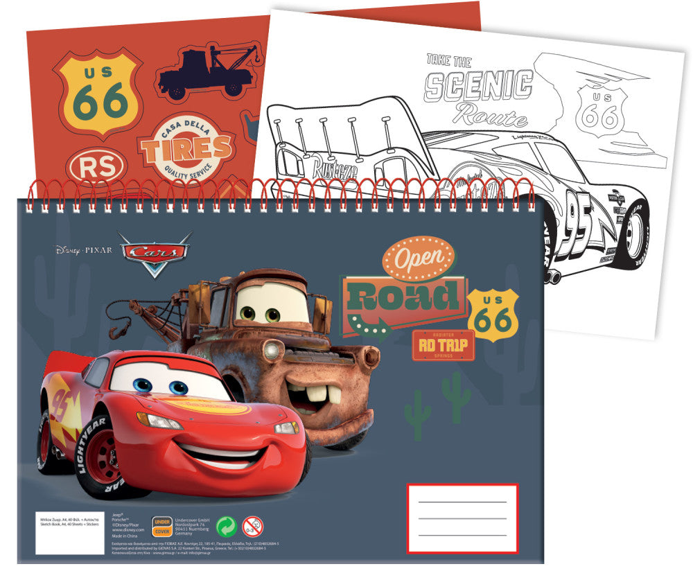 Disney Cars, Disney Verdák spirál vázlatfüzet, 40 lapos1 ív matricával és 3 db színezhető képpel!Méret: A/4 (23x33cm) Bővebben