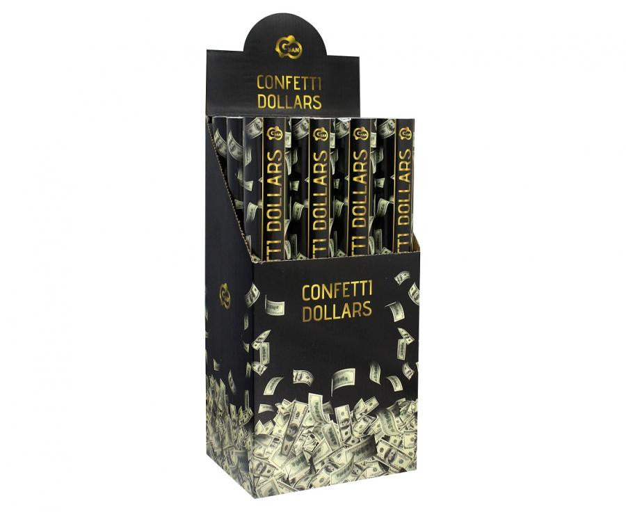 Dollars, Dollár konfetti kilövő 40 cmAnyaga: papír/műanyagMéret: 40 cmA henger alját a nyíl irányában elforgatva, konfettiket lövell ki.A kilökődés sűrített... Bővebben