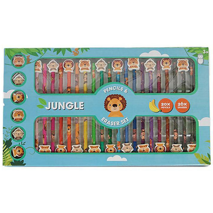 Dzsungel színes ceruza, grafit ceruza + radír szett