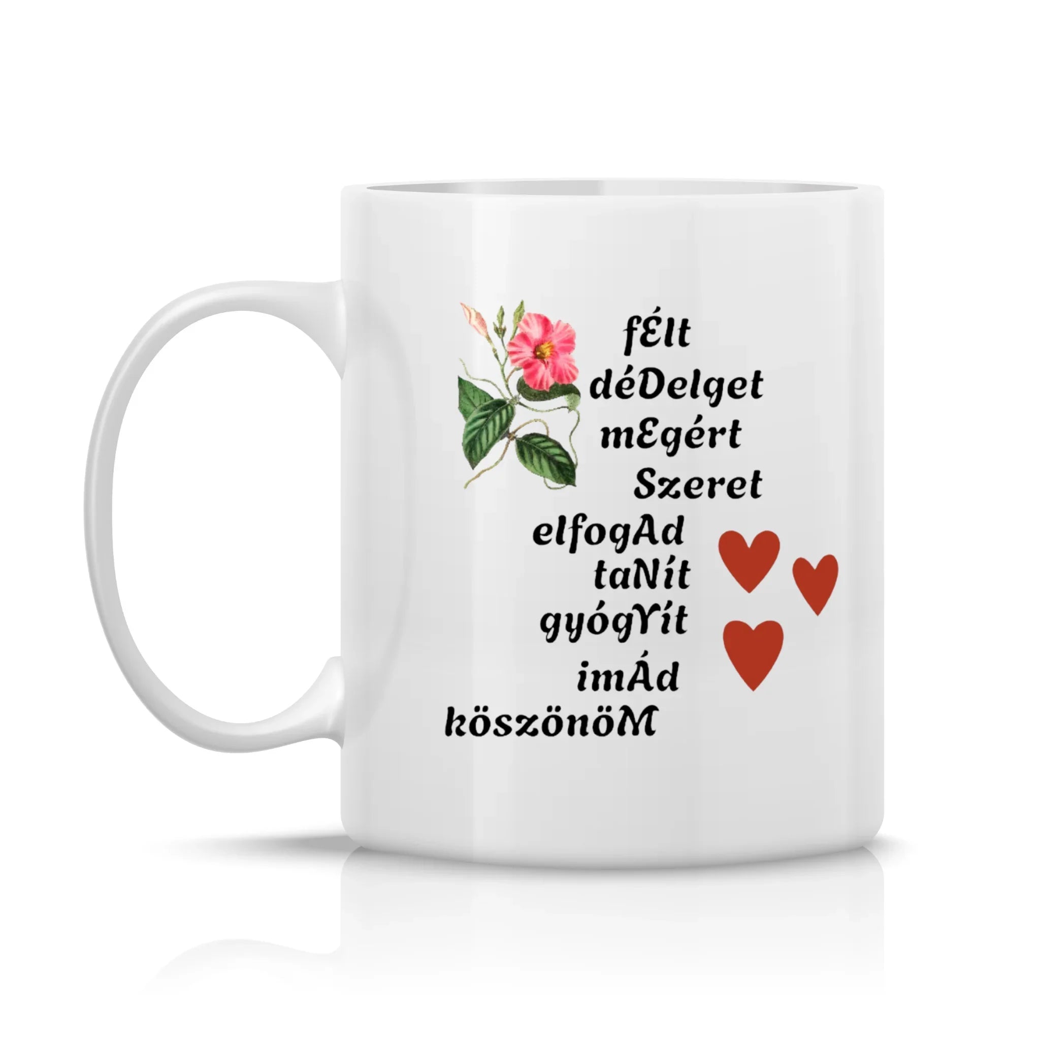 Ez nem csak egy bögre. Ha jobban megnézed, a szavak egy nevet rajzolnak ki: ÉDESANYÁM. Minden egyes betű mögött ott...