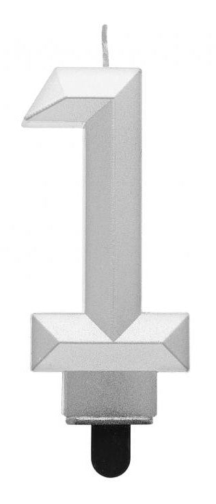 Ezüst 1-es Diamond Metallic számgyertya, tortagyertya