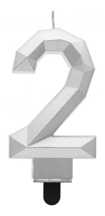 Ezüst 2-es Diamond Metallic számgyertya, tortagyertya