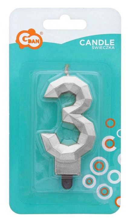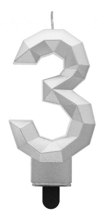Ezüst 3-as Diamond Metallic számgyertya, tortagyertya