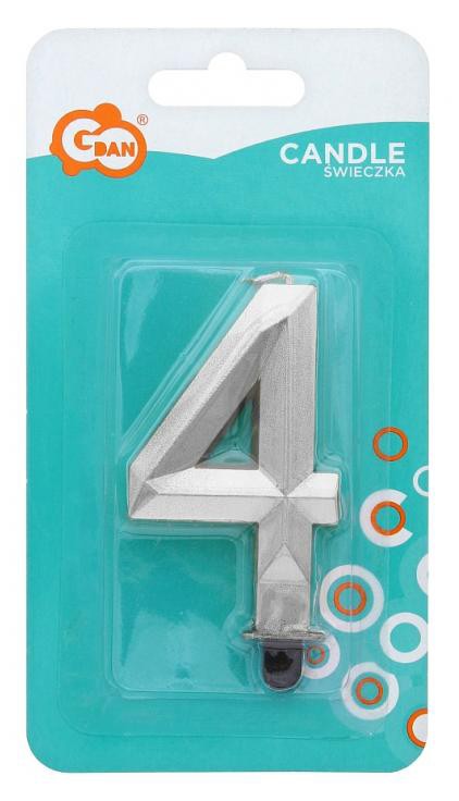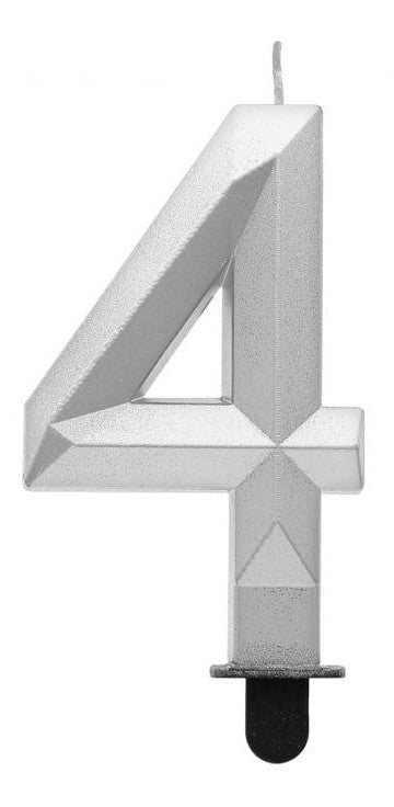 Ezüst 4-es Diamond Metallic számgyertya, tortagyertya