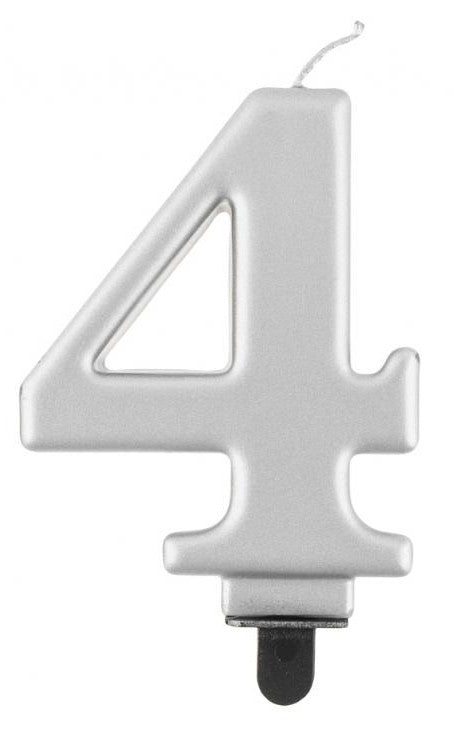 Ezüst 4-es Metallic számgyertya, tortagyertya