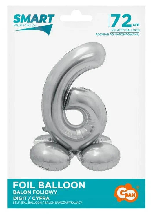 Ezüst 6-os Silver szám fólia lufi talppal 72 cm