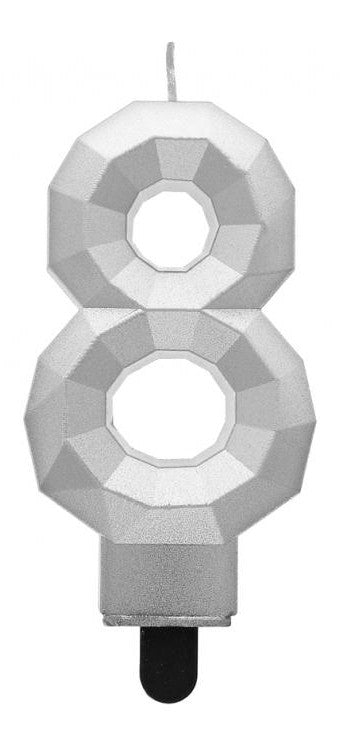 Ezüst 8-as Diamond Metallic számgyertya, tortagyertya