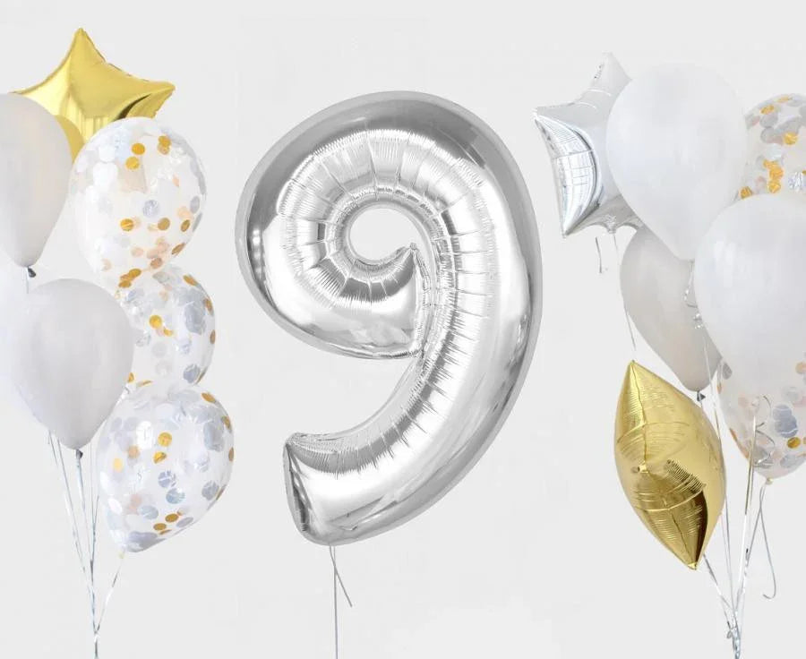 Ezüst 9-es Silver szám fólia lufi 92 cm