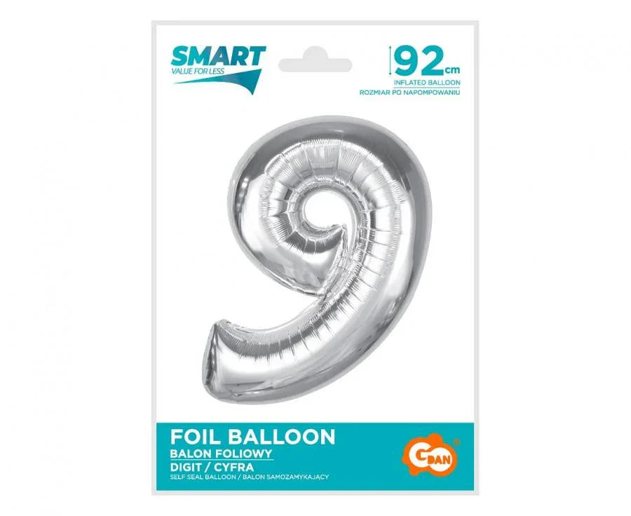 Ezüst 9-es szám fólia lufi 92 cmFólia léggömb, mely héliummal vagy levegővel tölthető. A lufi önzárószeleppel van ellátva, amely megakadályozza... Bővebben