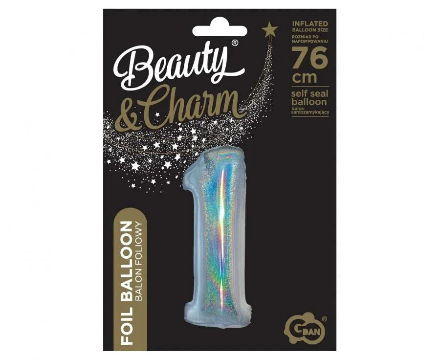 Ezüst Holographic 1-es szám fólia lufi 76 cm