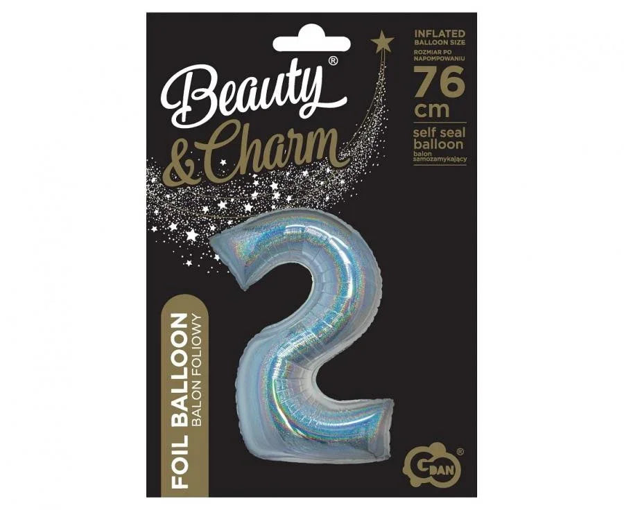 Ezüst Holographic 2-es szám fólia lufi 76 cm