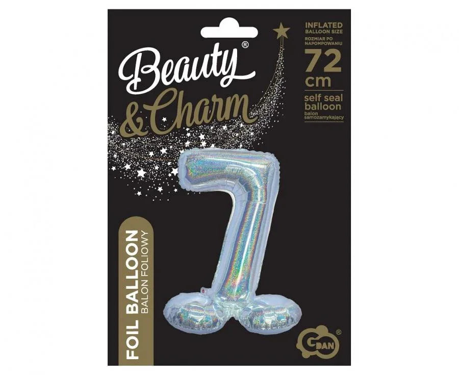 Ezüst Holographic Silver 7-es szám fólia lufi talppal 72 cm