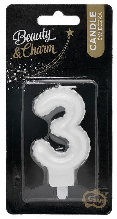 Fehér 3-as Pearly számgyertya, tortagyertya