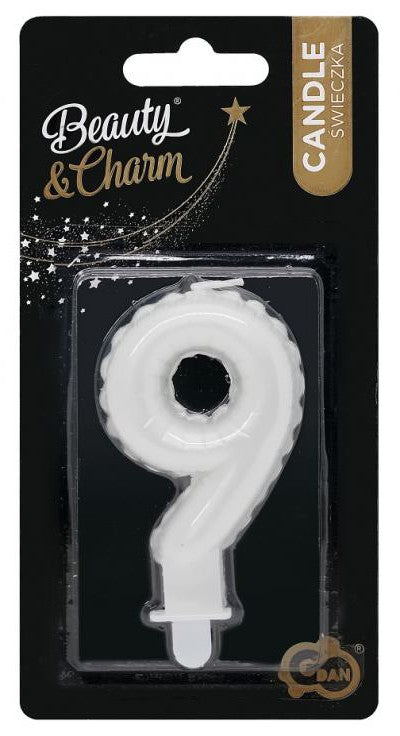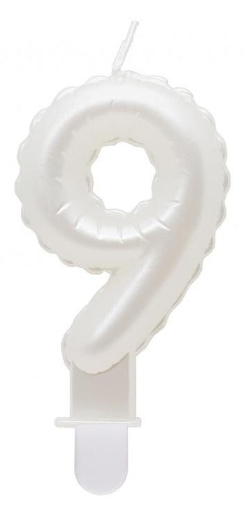 Fehér 9-es Pearly számgyertya, tortagyertya