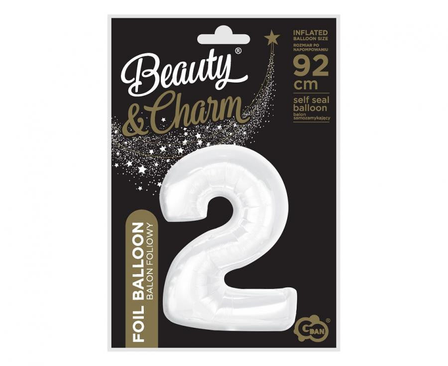 Fehér B&C White 2-es szám fólia lufi 92 cm