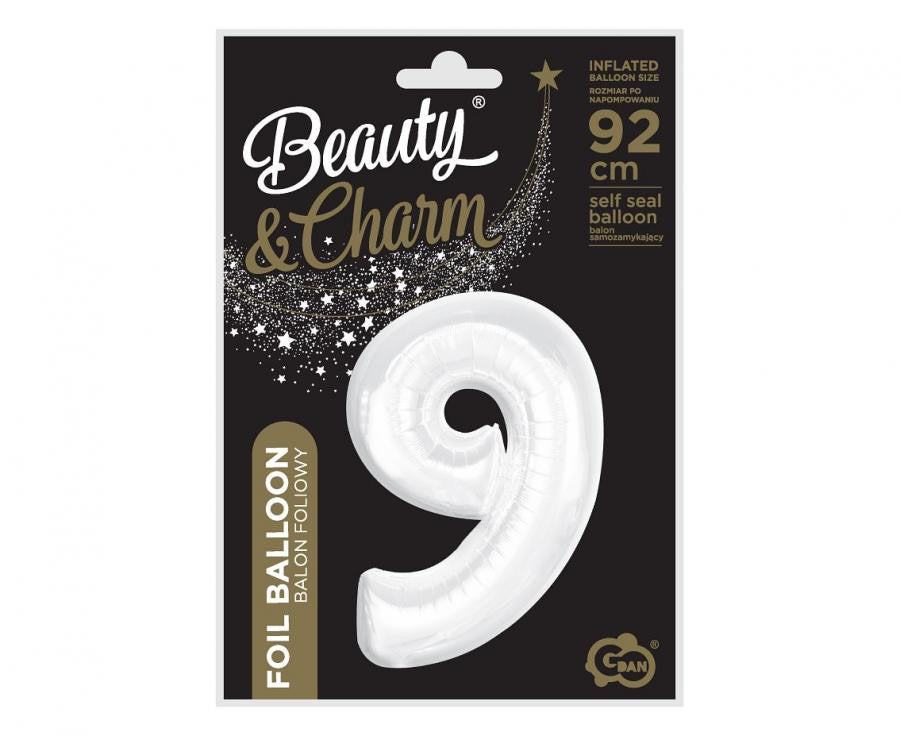 Fehér B&C White 9-es szám fólia lufi 92 cm