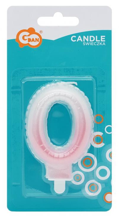 Fehér-Rózsaszín 0-ás Ombre számgyertya, tortagyertya