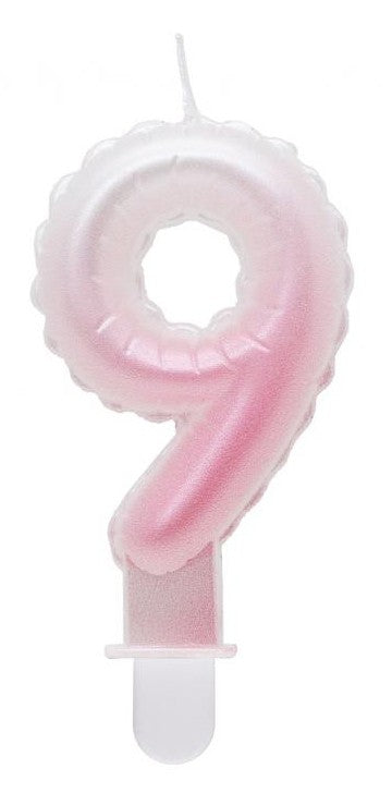 Fehér-Rózsaszín 9-es Ombre számgyertya, tortagyertya