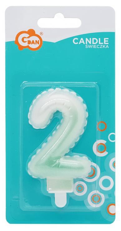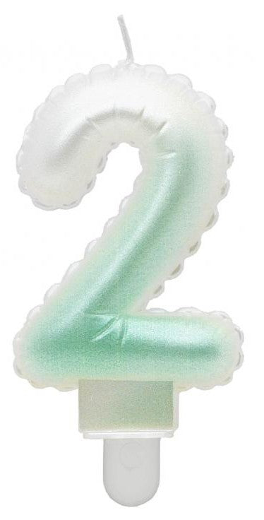 Fehér-Zöld 2-es Ombre számgyertya, tortagyertya