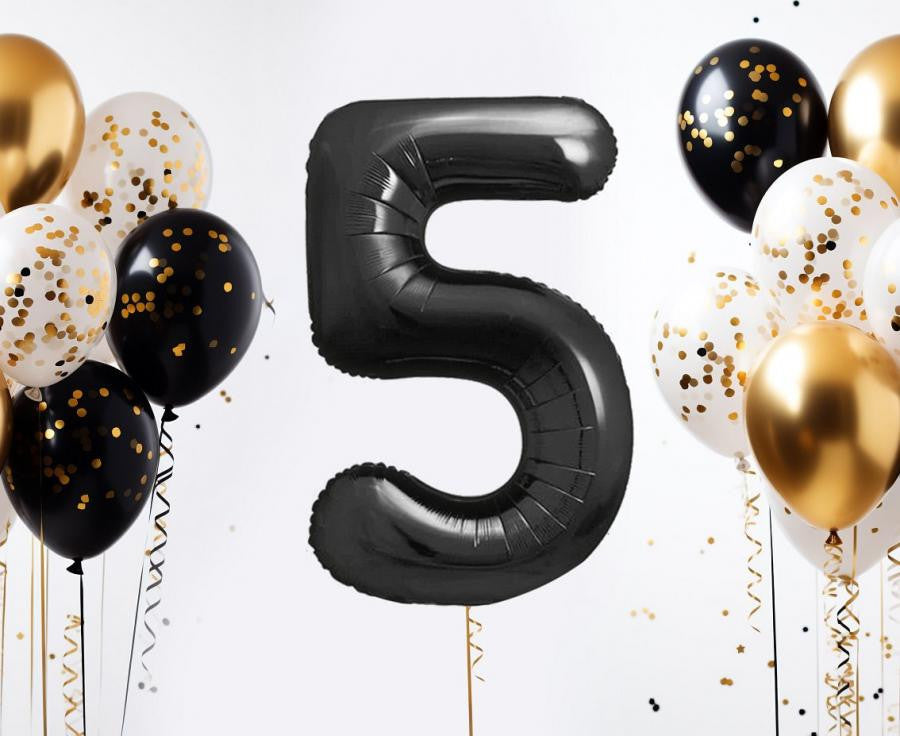 Fekete 5-ös szám fólia lufi 85 cmFólia léggömb, mely héliummal vagy levegővel tölthető. A lufi önzárószeleppel van ellátva, amely megakadályozza... Bővebben