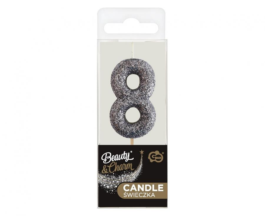 Fekete Glitter Black számgyertya, tortagyertya 8-as