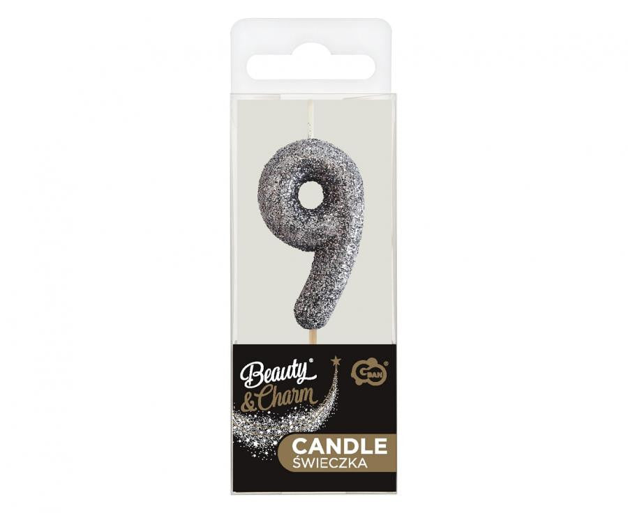 Fekete Glitter Black számgyertya, tortagyertya 9-es