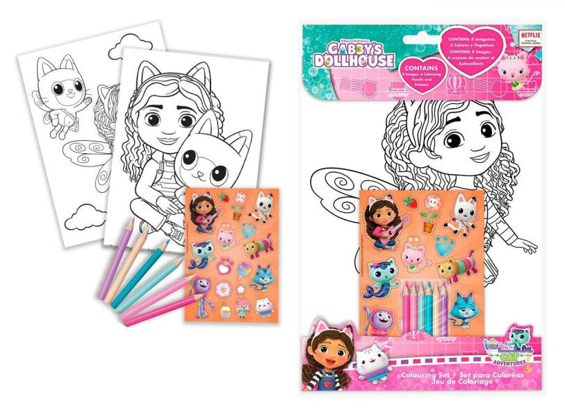 Gabby's Dollhouse, Gabi babaháza színező + matrica szettTartalma:- 8 db színezhető kép- 6 db színesceruza- 1 ív matrica3 éves kor... Bővebben
