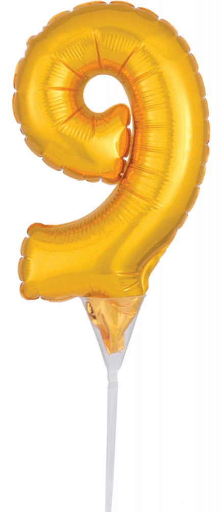 Gold, Arany 9-es szám fólia lufi tortára 15 cm