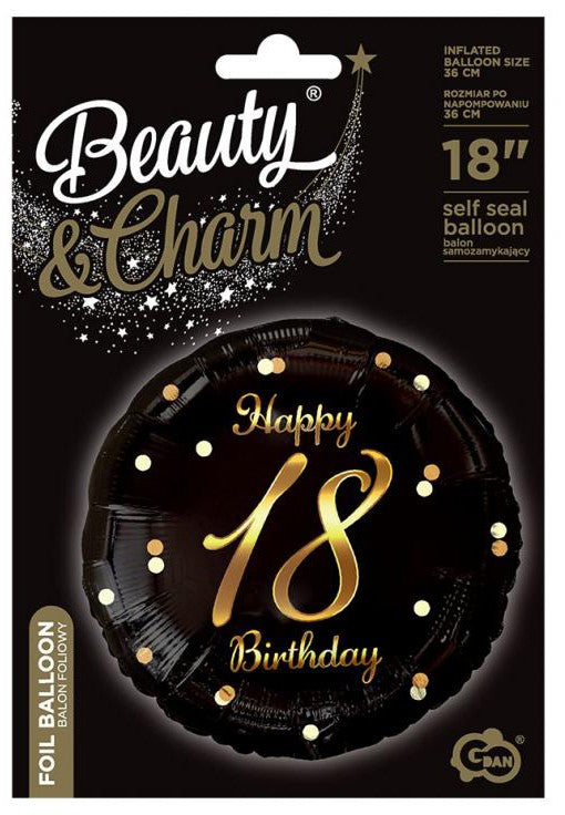 Happy Birthday 18 B&C Gold fólia lufi 36 cm