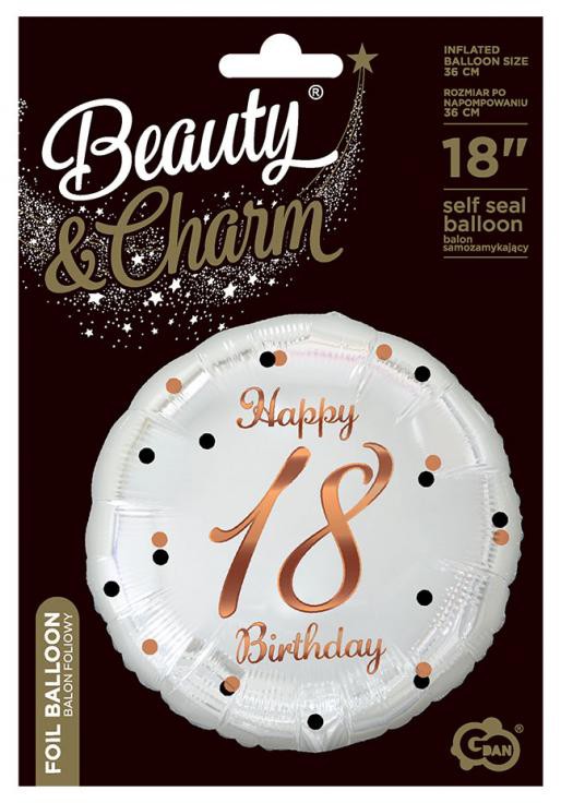 Happy Birthday 18 B&C White fólia lufi 36 cm
