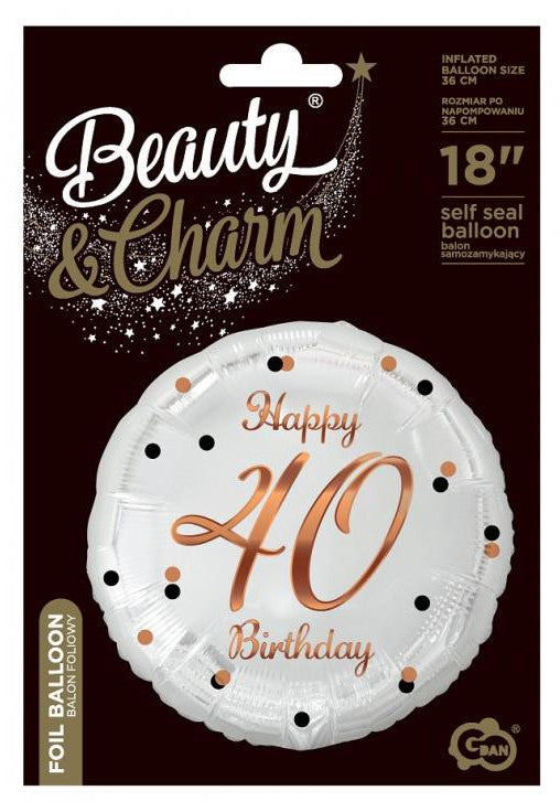 Happy Birthday 40 B&C White fólia lufi 36 cm
