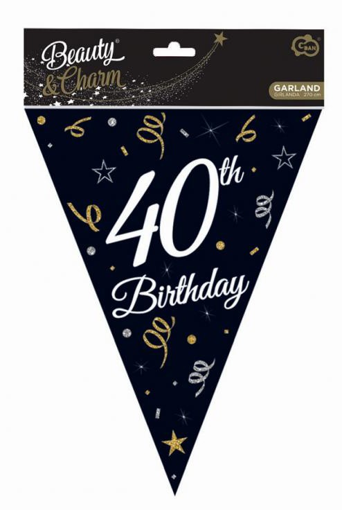 Happy Birthday 40 B&C zászlófüzér 270 cm