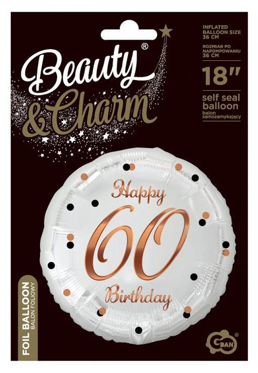 Happy Birthday 60 B&C White fólia lufi 36 cm