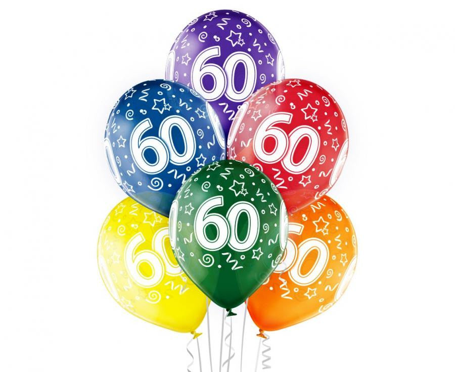 Happy Birthday 60 Colorful léggömb, lufi 6 db-os 12 inch (30cm)